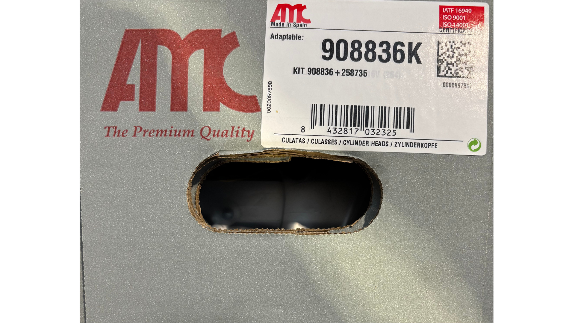 1 – El embalaje: AMC ha desarrollado y patentado el envasado que emplea para sus envíos. Este es de color gris y cuenta con varios logotipos y letras grandes en la parte superior y laterales del envase. El paquete está reforzado para evitar cualquier daño a la culata durante el transporte.: AMC ha desarrollado y patentado el envasado que emplea para sus envíos. Este es de color gris y cuenta con varios logotipos y letras grandes en la parte superior y laterales del envase. El paquete está reforzado para evitar cualquier daño a la culata durante el transporte.